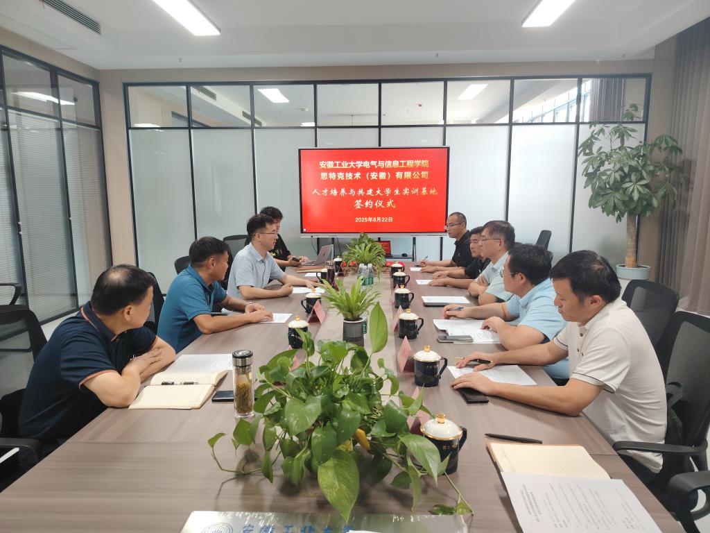 座谈会上,程木田重点介绍了学院学科与专业建设、师资力量、人才培养、科技创新等方面的突破性进展和显著成就。他强调,思特克技术(安徽)有限公司人才需求与学院的专业设置匹配度高,希望通过本次走访,深入了解企业技术需求、发展需求,加强校企产学研合作,共同服务地方产业发展。丰波代表思特克技术(安徽)有限公司对程木田一行表示热烈欢迎,详细介绍了企业的发展历程、业务范围、产品特色和人才需求等情况,表示双方合作潜力大,期待院企加强合作交流,拓展合作领域,实现合作互利共赢。