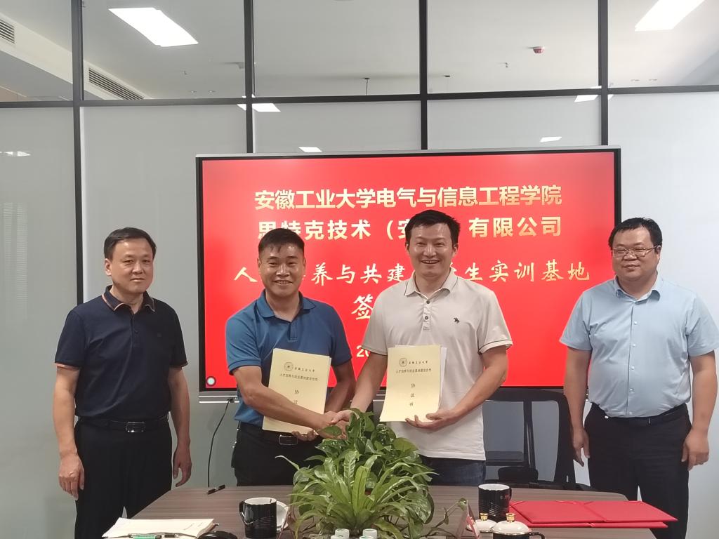 期间,双方围绕技术人才需求、就业实习基地建设、产学研合作等方面进行了深入交流。孔洋波代表学院与思特克技术(安徽)有限公司签订了人才培养与大学生实习实训基地合作共建协议、大学生就业基地建设合作协议。程木田为思特克技术(安徽)有限公司进行了“大学生就业基地”授牌。座谈会后,程木田一行参观了公司生产车间,详细了解了企业生产流程、产品特色等。