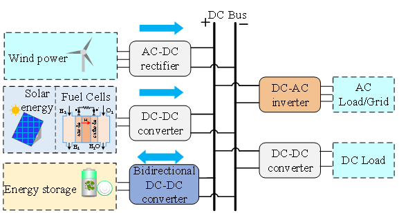 由于传统化石能源储量有限,且其使用过程中会带来气候变化和环境污染,因此以可再生和绿色清洁为特点的光伏、氢能和风力等新能源受到世界各国的高度重视。太阳能和风能等可再生能源发电系统受天气和环境因素的影响,表现出极大的波动性和间歇性。因此,通常需要储能装置来维持发电和负载消耗之间的功率平滑,同时也是电动汽车等储能装置的重要接口电路。考虑到储能电池的特点及其与能源系统母线电压之间的匹配问题,课题组开展了具有低输入电流纹波、高电压变比和低电压应力等特性的双向DC-DC变换器及其控制研究。该研究成果为低压可再生能源发电与储能系统赋能。