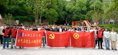 活动在《错位时空》(五四特别版)和《强国一代有我在》的旋律中展开。活动伊始,甘如美江老师对此次活动做了动员,指出此次活动的意义;随后,院团委副书记胡静怡同学带领大家重温入党誓词、入团誓词,宣誓结束,甘如美江带领同学们来到佳山校区主楼前,为同学们讲了一堂题为“弘扬爱国精神、激扬奋斗青春”的主题思政课。思政课结束后,全体同学穿上红马甲,戴上党徽、团徽,从佳山校区出发,徒步到达佳山,登上山顶,沿途同学们拿起垃圾袋,主动捡起佳山周围垃圾,以实际行动守护绿水青山。