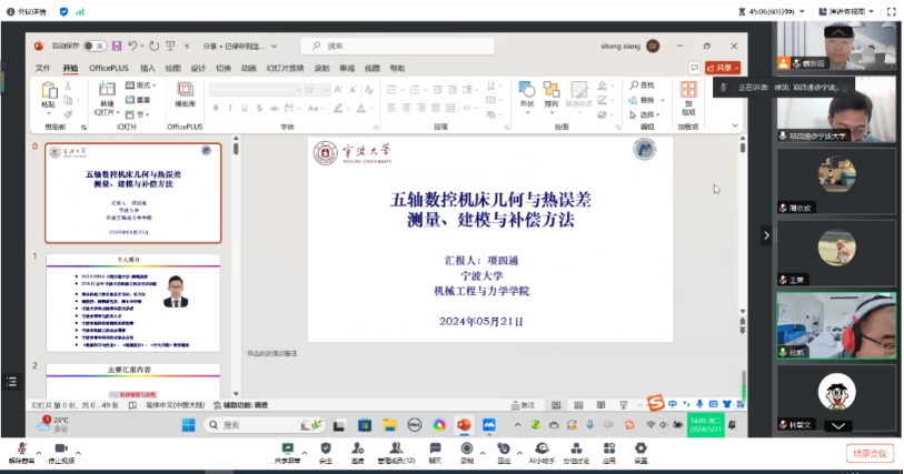 5月21日,宁波大学项四通副教授在线上为学院师生作了题为“五轴数控机床误差辨识测量与补偿方法”学术报告,报告由探花视频