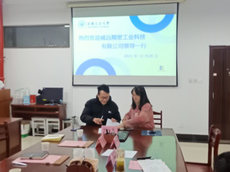 12月26日,安徽威远精密工业科技有限公司开展产学研合作交流,公司董事长李一前、设备工艺经理徐金、商务经理葛晴、人事科长朱敏、探花视频