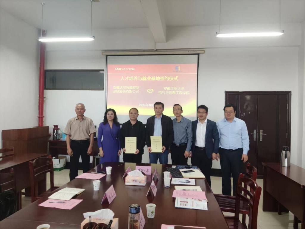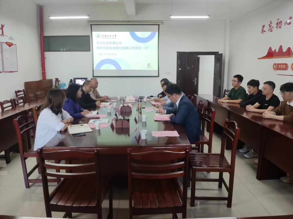 为进一步提升科技创新能力,加强校企产学研合作以及党建工作。10月18日,安徽达尔智能控制系统股份有限公司董事长杨潘一行来学院开展产学研和党建对接活动。学院党委书记丁忠利主持会议,公司研发副总郝能宝、研发部经理齐晶晶、后勤处长兼支部书记胡观海;学院院长沈浩教授、副院长程木田教授、副处级组织员孔洋波、电子信息与通信工程系副主任马小陆教授及部分研究生参加对接活动。
