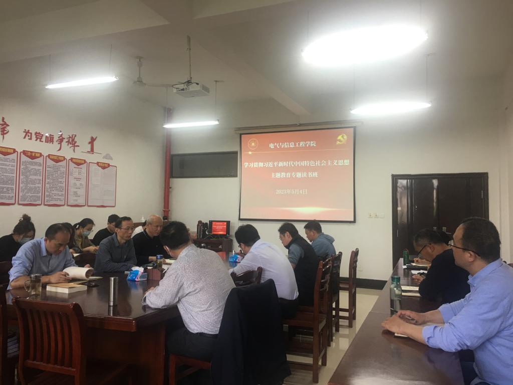 学习贯彻习近平新时代中国特色社会主义思想主题教育专题读书班暨开班仪式在电气楼304会议室举行。院领导班子成员、党委委员、纪委委员、科级干部、支部书记和辅导员参加开班式,会议由学院党委副书记夏玉钦主持,马克思主义学院阮超群教授作了专题辅导。