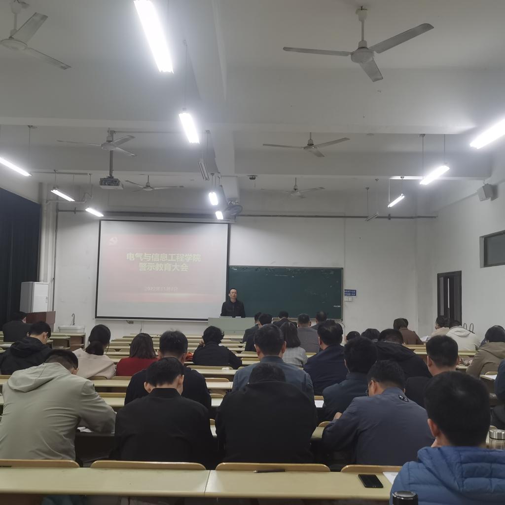 在电气楼112召开全院教职工警示教育大会,大会由学院党委副书记、院长王兵主持,学院领导班子和全体教职工参加会议。