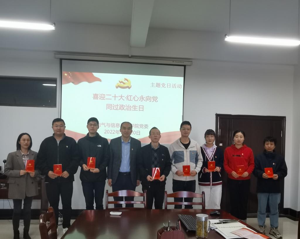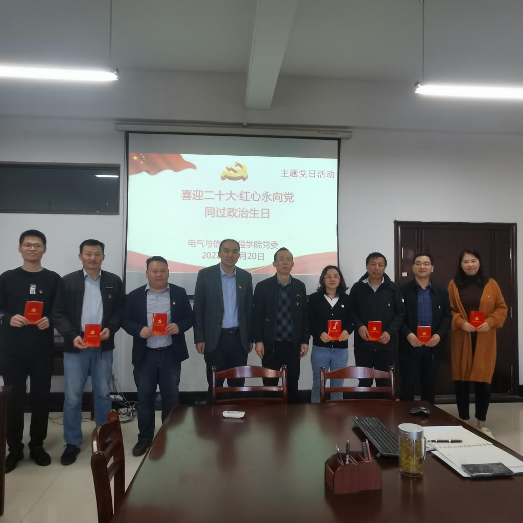 党委为在10-12月份入党的教师党员举行“喜迎二十大·红心永向党·同过政治生日”主题党日活动。学院党委书记丁忠利、院党委副书记、副院长夏玉钦、党支部书记代表、10-12月入党的教师党员参加活动。