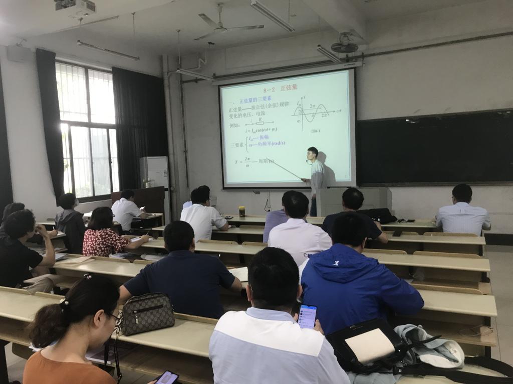 示范课教学由学院课程思政优秀教学案例比赛一等奖的陈思乐和李峰两位老师主讲。陈思乐老师在讲授《电路理论》课程中交流电三要素教学内容时,分析了正弦量的三要素概念和物理意义,穿插融入交流直流的技术之争,指出技术的适用范围,展示了我国在直流输电传输领域的突破性贡献,引导学生要努力学好专业知识,不断增强服务我国科技进步的信心。李峰老师以《电工学》中基尔霍夫定律为例,通过介绍电路复杂化导致电流和电压的计算难题,给出了基尔霍夫电流定律和电压定律的解决方法,讲述了基尔霍夫面对当时工程技术难题提出了新颖的解决路径,引导同学们要主动关注行业中的工程技术难题,不断增强开拓创新精神。课程结束后,校院督导专家以及老师们就课程思政的教学目标、教学设计、课上教学、课堂反馈以及专业知识传授、思政元素定位、教学效果达成等关键点进行了探讨。