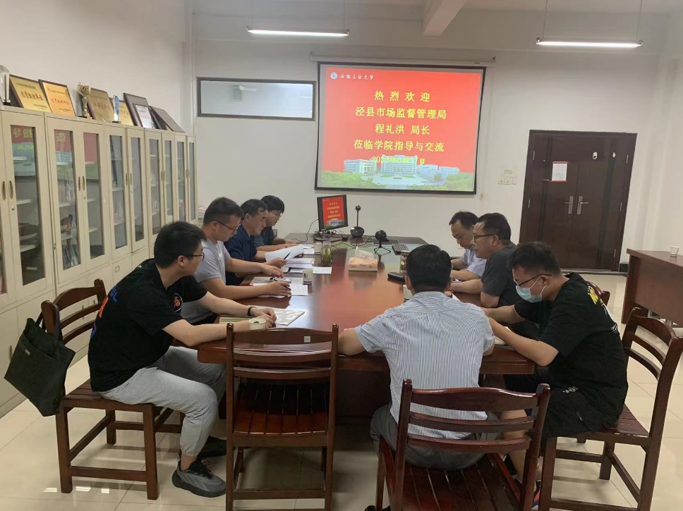 王兵代表学院对程礼洪副局长一行的到访表示热烈欢迎,并介绍了学院的学科优势、师资队伍以及当前产学研合作情况。程礼洪副局长介绍了泾县市场监督管理局与微电机国家检测中心(筹)的基本情况、发展历程以及未来发展定位。