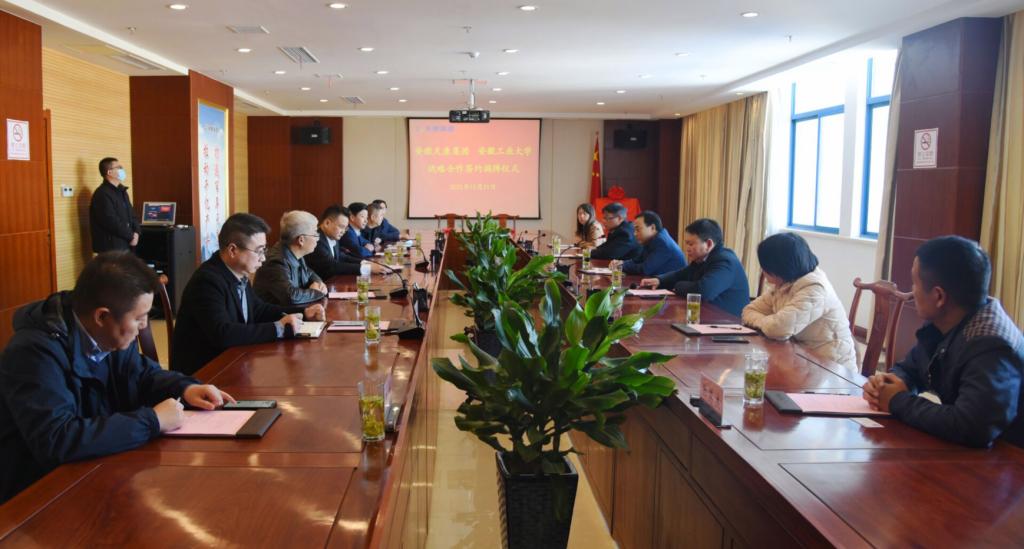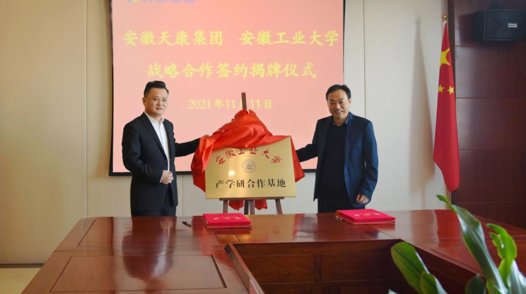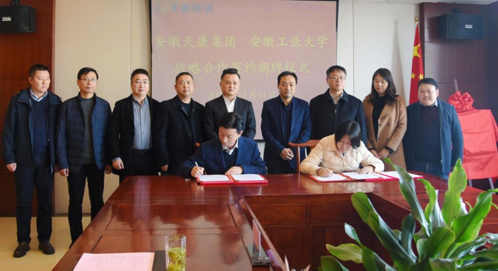院长王兵率队至安徽天康集团举行产学研合作签约与基地揭牌活动,安徽天康集团总经理毛文章、集团监事会主席李劲松出席签约仪式,学院测控系支部书记、系主任和骨干教师参加了对接活动。