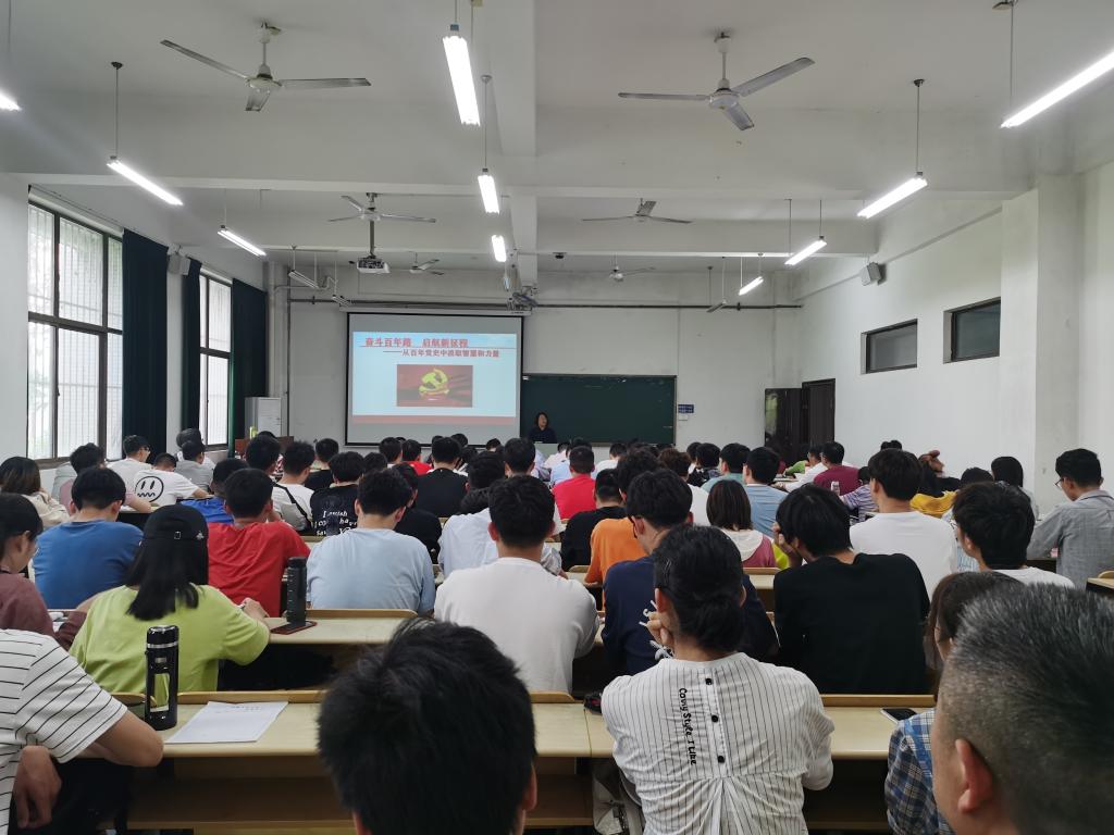 师生党员作“举旗帜、送理论”建党百年专题宣讲,宣讲会由探花视频