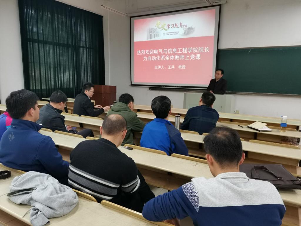 自动化党支部开展建党100周年“光辉的历程”党史学习,会议由支部书记孔庆凯主持,学院院长王兵教授主讲,系全体教师参加了这次党史学习教育。