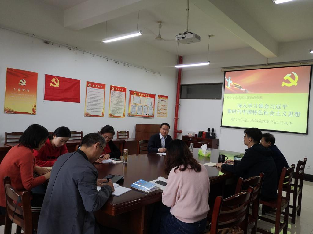 实验中心全体党员参加“不忘初心、牢记使命”主题教育学习会,学院党委书记叶凤华以“深入学习习近平新时代中国特色社会主义思想,做新时代合格的大学教师”为题,为大家上党课。