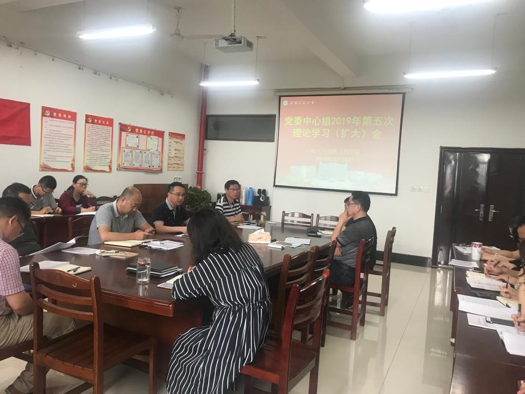 党委中心组在电气楼304会议室召开2019年第五次集中学习(扩大)会议。学院党政领导、党委委员、党支部书记、系室中心主任、科级干部、工会主席和全体辅导员参加了会议。院党委书记叶凤华主持会议。