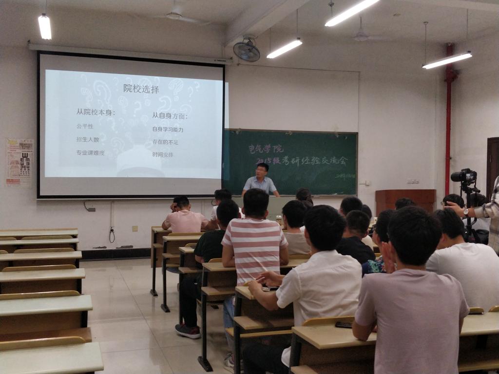 “传经送宝”各专业考研经验分享会在电气楼112、113、114、115教室同步进行,学院2015级有考研诉求的同学聆听了高年级优秀学长的经验分享。