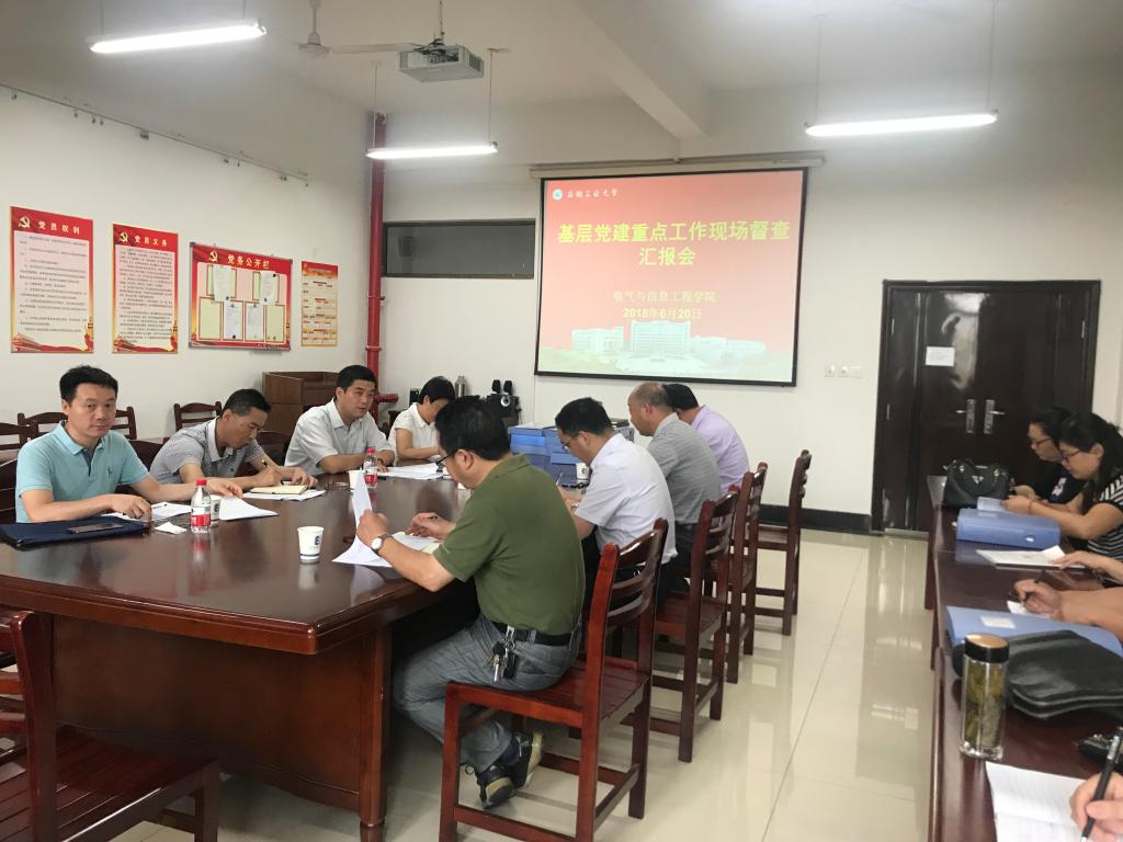 6月20日上午,学校基层党建重点工作调研督查组到电气与信息工程学院就学院基层党建重点工作开展情况进行调研督查。调研督查组由学校办公室主任窦贤琨、纪委办副主任、监察处副处长毛国红、组织部副部长路壮志、机械工程学院党委书记徐柳根组成。电气学院党政班子成员和全体党支部书记参加了会议。