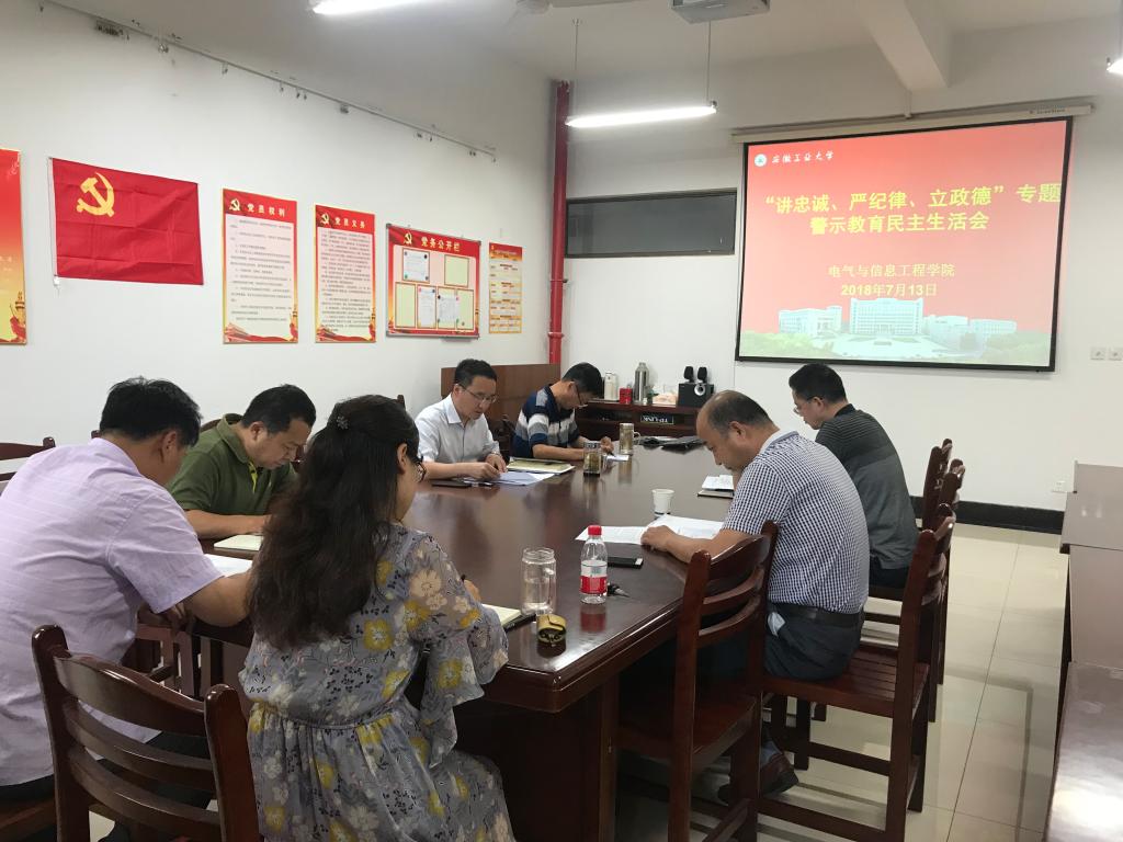党委在电气楼304会议室召开“讲忠诚、严纪律、立政德”专题警示教育民主生活会,学院领导班子成员、党委委员参加了会议,会议由院党委书记叶凤华主持。