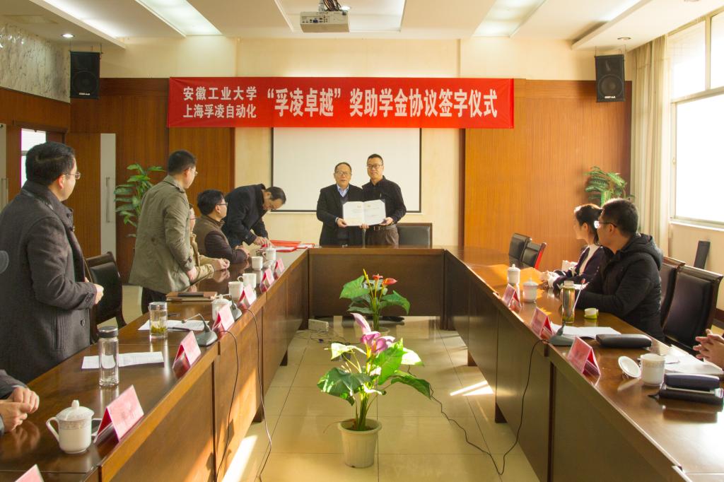 —上海孚凌自动化控制系统有限公司“孚凌卓越”奖助学金捐赠协议签字仪式在佳山校区会议中心举行。副校长葛芦生出席仪式并讲话。孚凌自动化公司董事长彭正伟、财务总监杨军,我校教育发展基金会秘书处负责人和探花视频