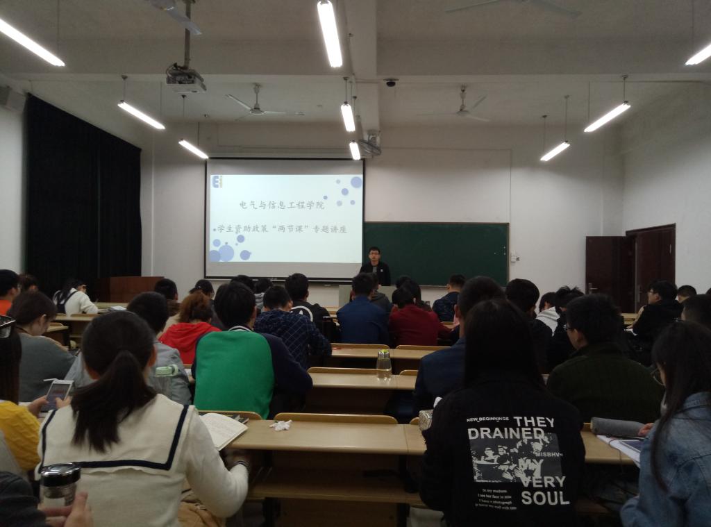 举办学生资助政策“两节课”专题讲座,宣传学生资助政策,教育学生诚实守信、励志成才。各年级班干部、党员参加讲座。