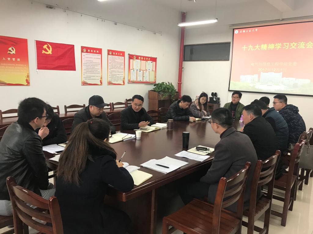 十九大精神交流座谈会在电气楼304举行。学院党委书记叶凤华、党委副书记副院长郭宏,全体辅导员,学生党员代表参与交流座谈。会议由郭宏主持。