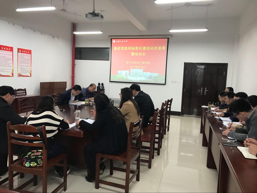 基层党组织标准化建设组织施工图>的通知》两个文件精神,将学院党委制定的《电气与信息工程学院基层党组织标准化建设组织施工图》进行了详细解读。对全院基层党组织标准化建设工作任务进行了安排部署,并结合学院当前党建工作进行了重点培训。