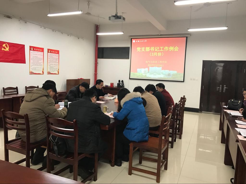 党支部书记工作例会在电气楼304会议室召开。院党委书记、党委副书记、全体党支部书记、党务秘书参加会议。会议由院党委书记叶凤华主持。