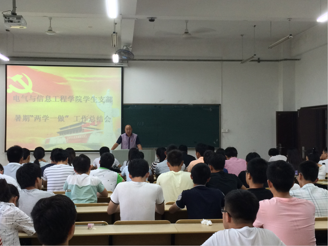 学生支部在电气楼112召开“两学一做”系列活动之习近平总书记“七一”重要讲话精神学习会。院党委副书记、副院长郭宏、全体学生支部书记、全体学生党员参与活动。会议由张敏主持。