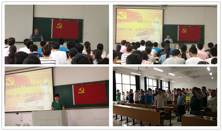 举办新党员宣誓仪式暨学生支部暑期“两学一做”学习教育工作动员会,院党委副书记、副院长郭宏、全体学生支部书记、全体学生党员参与活动。活动由张敏主持。