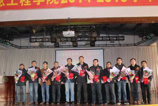 院长刘晓东宣读了2014-2015学年学生评奖评优表彰决定,副院长聂建华宣读了学院2014-2015学年优秀班主任表彰决定。表彰会上,气123班王燕同学、自134班廉月同学分别代表获奖集体和获奖学生发言。在热烈的掌声中,学院党政领导为获奖集体、个人颁发获奖证书,佩戴光荣花。