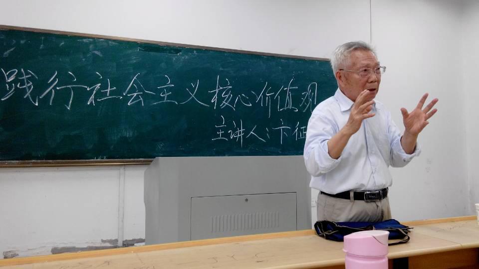 于电气楼112教室举办了新学期第一次学生党员、学生干部理论培训——“践行社会主义核心价值观”报告会。年逾八旬的卞征泰教授应邀担纲主讲,院党委副书记郭宏、全体辅导员出席,会议由尚全主持。