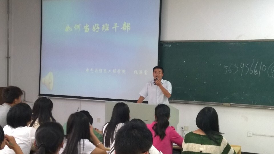 14级新生学生干部培训班于电气楼112举行第一次讲座。学院党委副书记、副院长郭宏,团委书记张满堂,14级辅导员李修正及全体14级学生干部参加了会议。会议由张满堂主持。