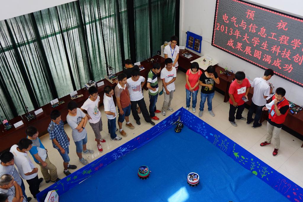 9月22日,电气信息学院首届大学生科技创新成果展在电气楼一楼大厅成功举办。近几年在各级各类竞赛中获奖的部分大学生科技创新作品参加了展出。