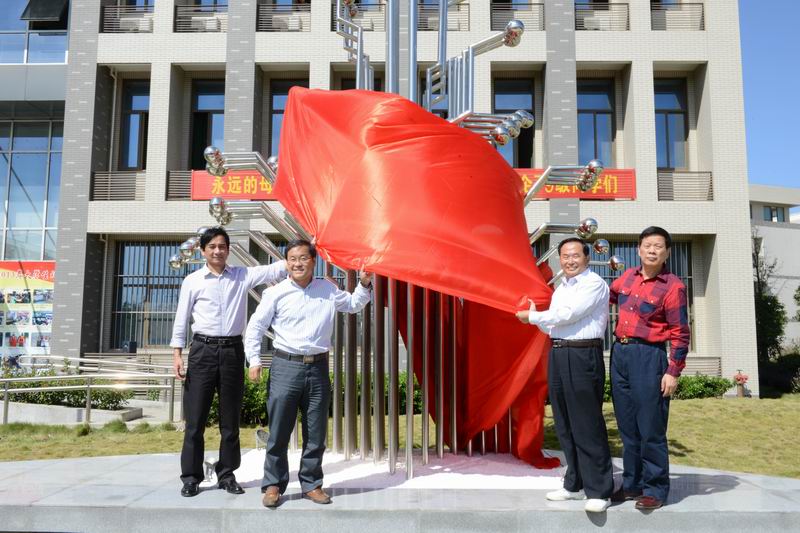陈润、王兴无和工企83届学生代表共同为雕塑揭幕。