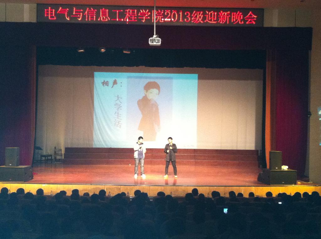 在新大学生活动中心举行2013级迎新晚会,学院副院长聂建华,党委副书记、副院长郭宏,2013级班主任,辅导员,其他学院团委学生会负责人,2013级全体新生参加了晚会。现场高潮迭起,精彩纷呈。