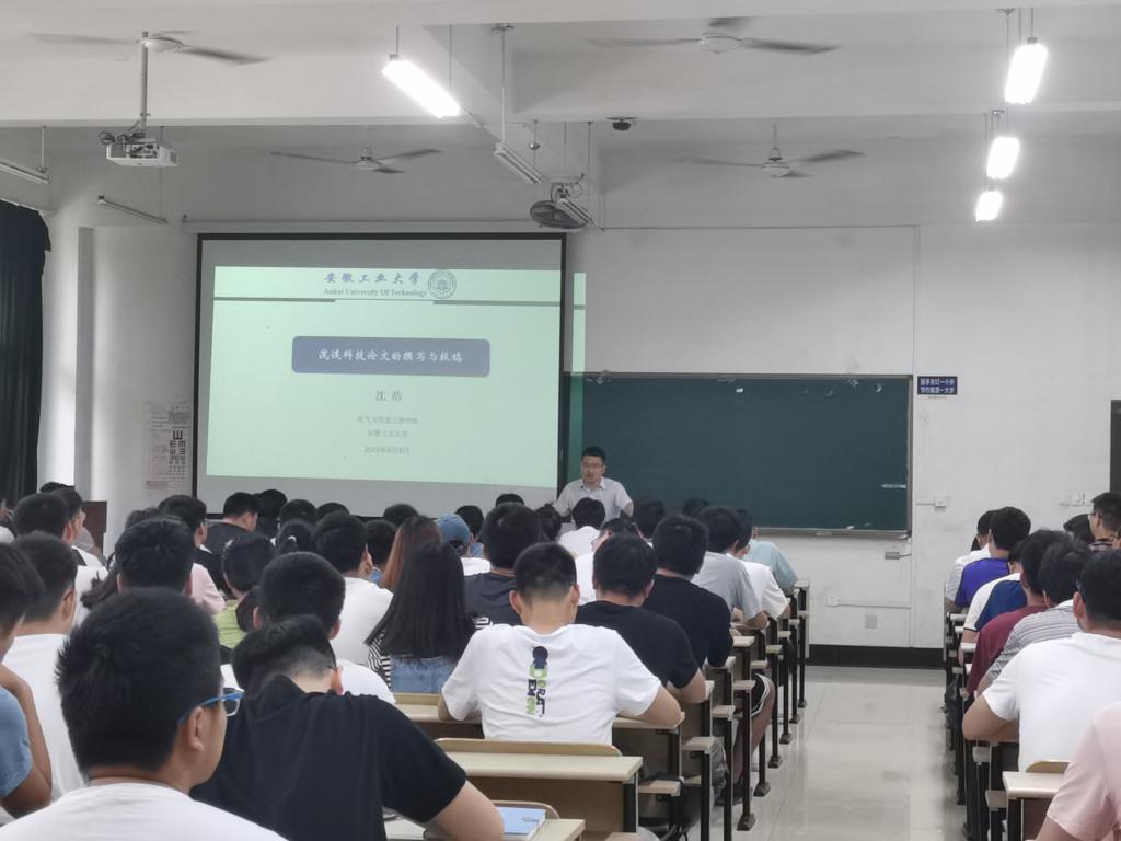 科研副院长沈浩教授在电气楼113教室为学院全体研究生及青年教师作了“科技论文的撰写与投稿”专题讲座。