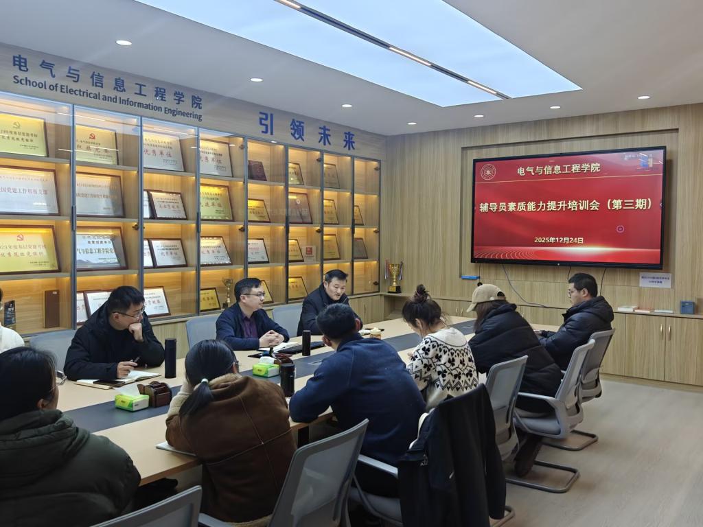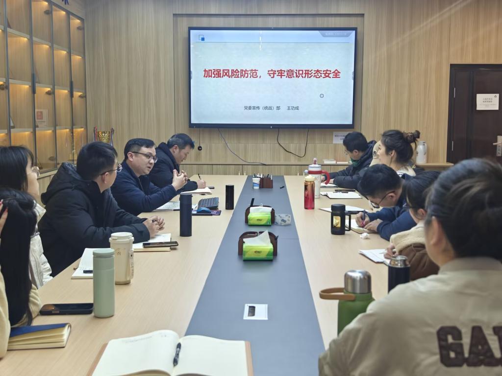 12月24日下午,学院在电气楼308会议室举办第三期辅导员素质能力提升培训会,聚焦“加强风险防范,守牢意识形态安全”主题,旨在进一步提升辅导员在新形势下的网络意识形态风险防控能力,筑牢网络安全防线。校党委宣传(统战)部副部长王功成应邀主讲,学院党委副书记、纪委书记、副院长孔洋波主持会议,学院办公室主任、党委秘书及全体辅导员参加学习。