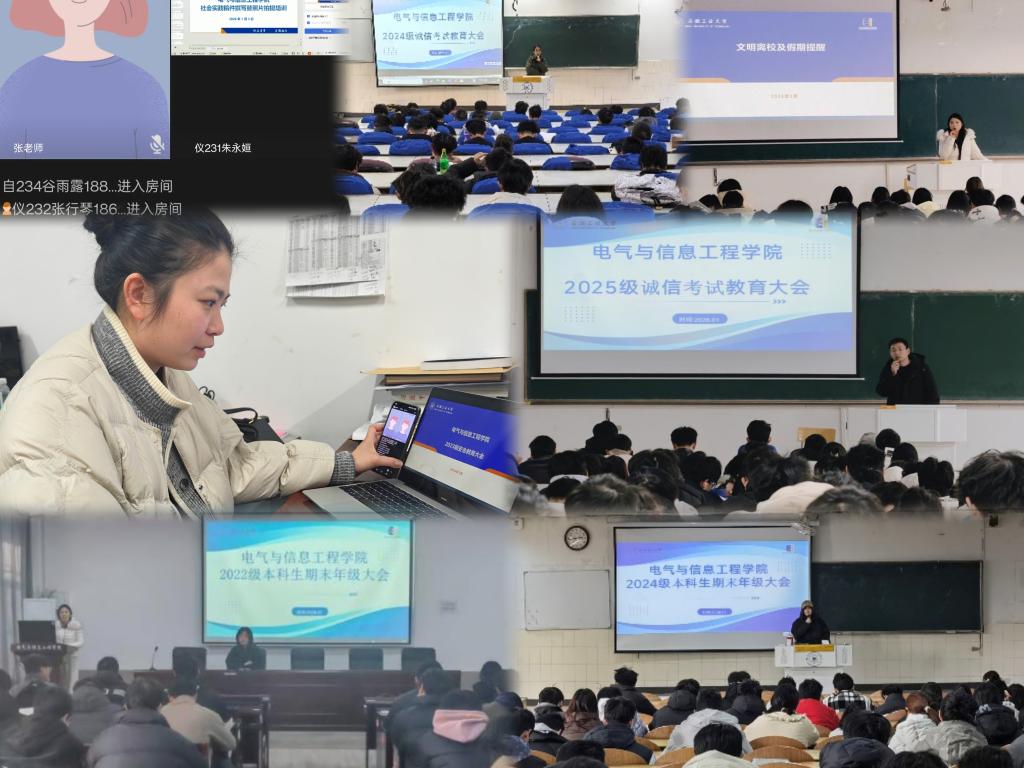以各年级为单位分别组织召开期末年级大会,围绕诚信考试、学业提醒、安全教育、心理健康、社会实践与文明离校等内容开展系统宣讲与集中教育。全体辅导员按年级主持会议,各年级本科生全员参加。