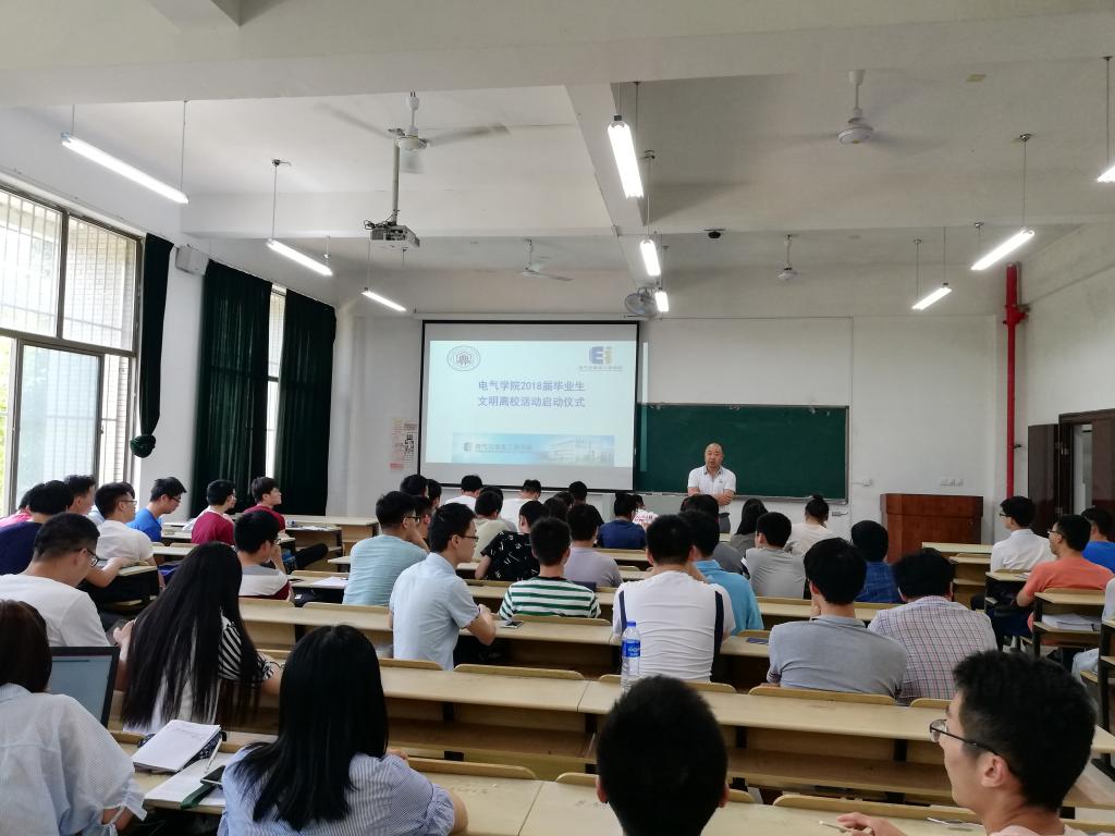 于2018年6月11日在电气楼113召开2018届毕业生文明离校布置会。出席本次会议的有院党委副书记、副院长郭宏,2018届辅导员李修正,2018届全体学生党员、主要学生干部。