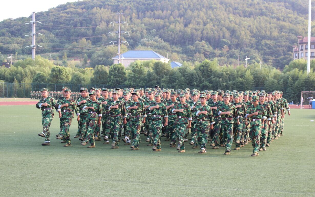 与其他各个学院的2016级新生在我校运动场上进行了第一次会操表演活动。各个教官及军训师师长参观并指导了此次活动。