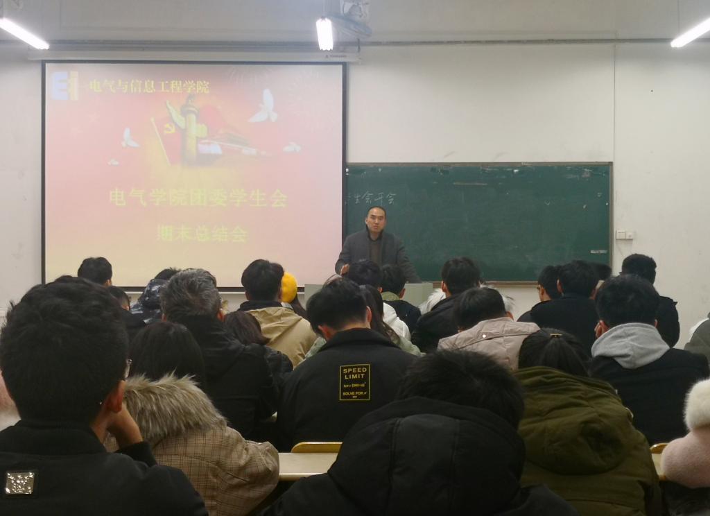 于电气楼112教室召开团委学生会期末总结会。学院党委副书记、副院长夏玉钦,2018级辅导员李修正及全体团委学生会成员参加本次会议。