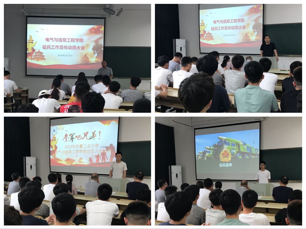 于电气楼115室召开征兵工作宣传动员会。学院党委副书记、副院长郭宏,校武装部老师谢学华,学院各年级辅导员,各班级学生干部代表以及志愿参军入伍的学生参加了会议。