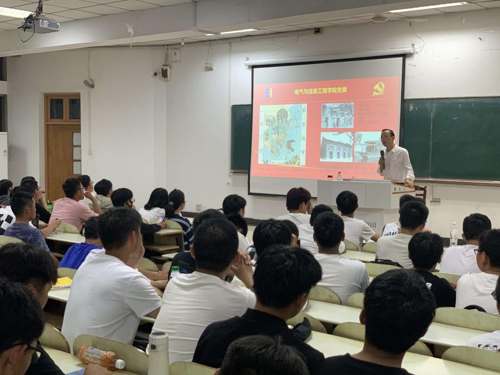 在佳山校区教三南103、404教室举行2022级新生入党启蒙教育,学院党委书记丁忠利主讲,院团委书记李修正、2022级辅导员甘如美江及全体新生参加。