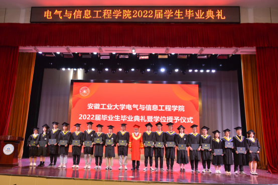 毕业典礼既是对过去四年的总结,也饱含即将毕业的电气学子们对未来的期盼。满载祝福再出发,历尽千帆仍少年。四年前他们带着求知的心走进安工大,创造了辉煌的过去;行远思恩,毕业后他们将带着感恩之心离开母校,拥抱美好的未来。祝愿全体2022届毕业生前程似锦,在追梦的路上扬帆远航。