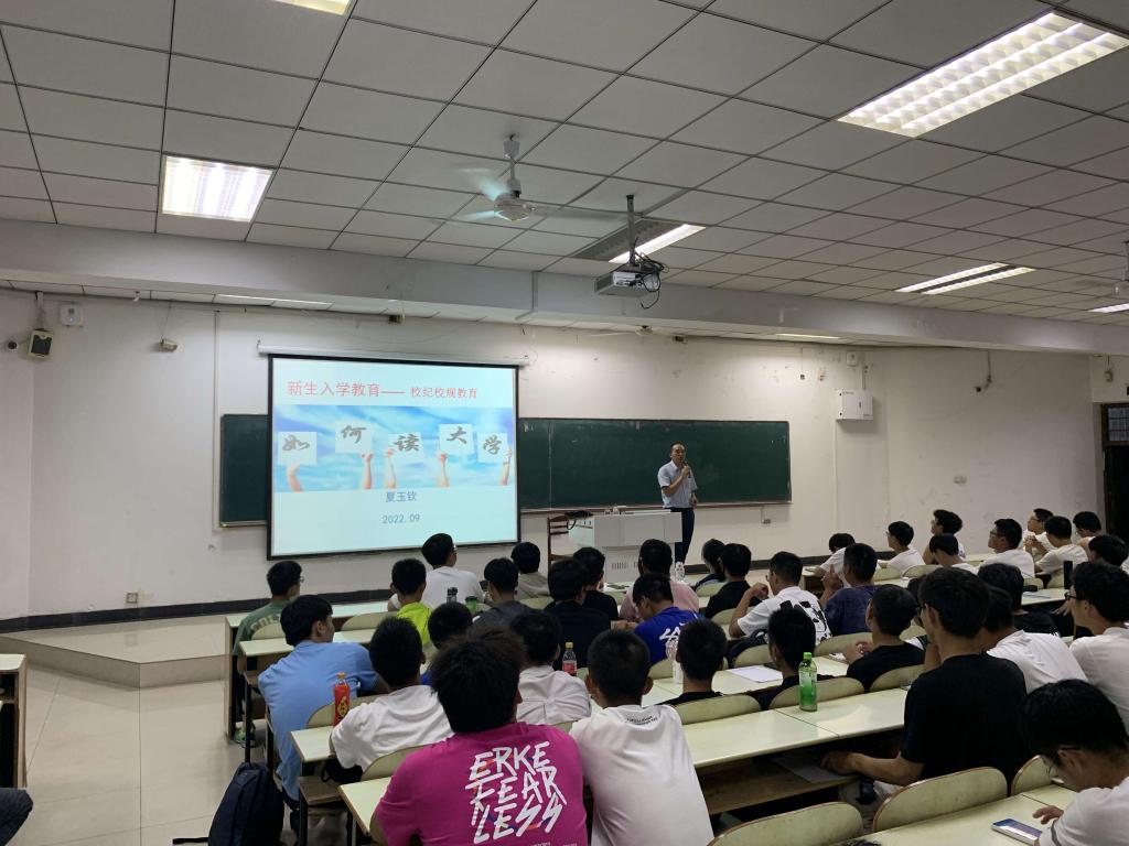 于佳山校区教三南103、404开展新生校纪校规教育,学院党委副书记、副院长夏玉钦主讲,2022级全体新生参加此次学习。
