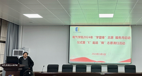 在秀山校区电气楼113报告厅举行“学雷锋”志愿服务月启动仪式暨“E”起追“锋”系列活动之“E”起学雷锋志愿清扫活动。学院党委副书记、纪委书记、副院长李克明、各年级辅导员,志愿者学生代表共100余人出席会议。此次会议由院团委书记甘如美江主持。
