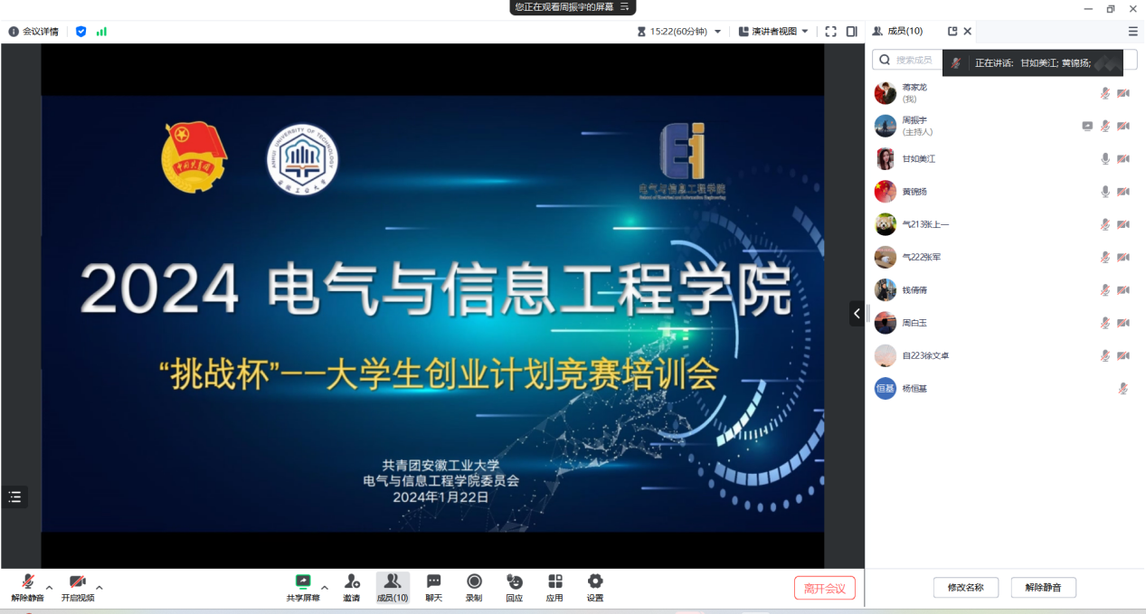 举办入围“挑战杯”校赛决赛项目线上模拟培训会,现场部署团队备赛内容,晋级项目所在项目团队负责人参加了会议,此次会议由探花视频