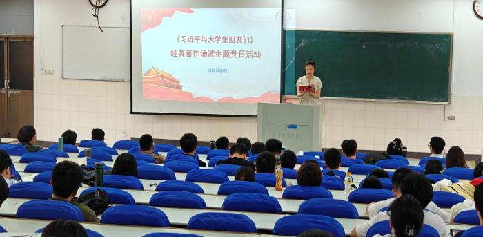 6月12日在学生党日活动中,研究生学术型党支部副书记何琳老师带领全院学生党员学习了《习近平与大学生朋友们》中的一个章节:“习近平总书记勉励我们爱国、励志、求真、力行”。励我们爱国、励志、求真、力行”。她以饱满的精神状态投入到诵读中,声音洪亮而坚定,带大家重温了习近平总书记来到北京大学的采访和学习经历。习近平总书记勉励广大青年要“爱国、励志、求真、力行”,努力成长为德智体美劳全面发展的社会主义建设者和接班人,让中华民族伟大复兴在奋斗中梦想成真。