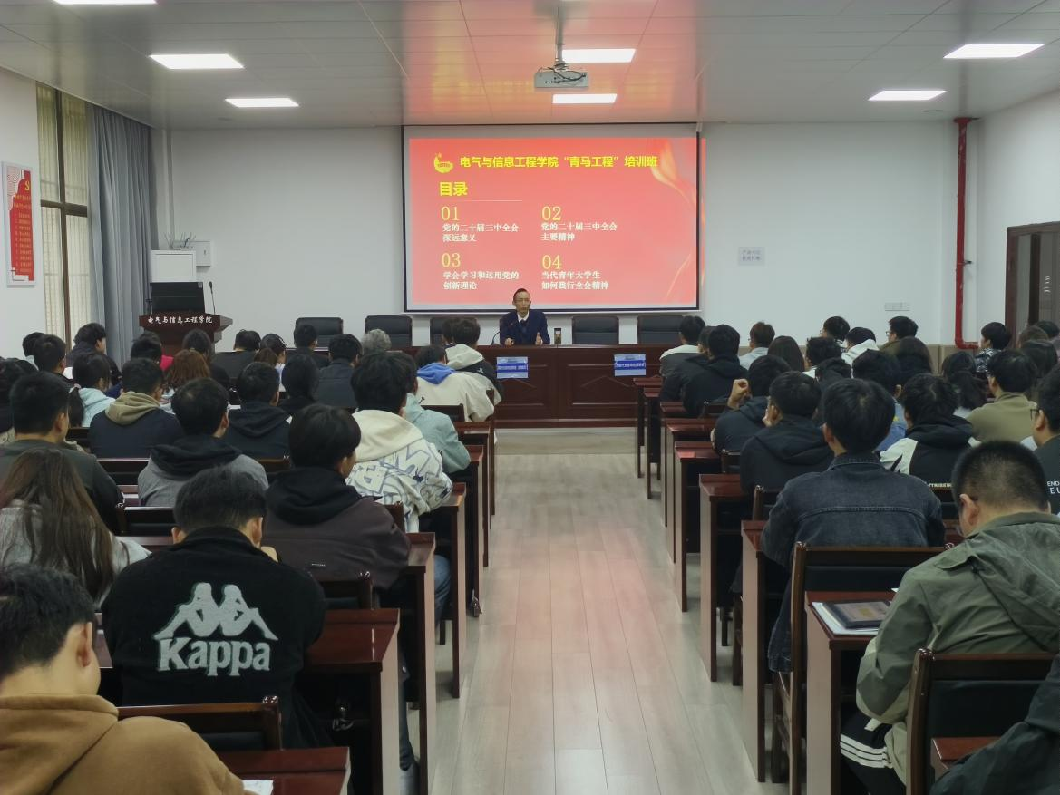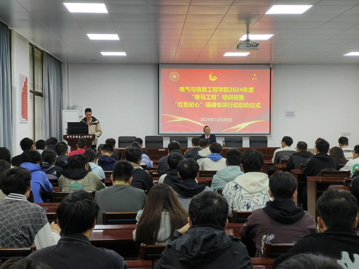 为深入学习贯彻党的二十届三中全会精神,全面贯彻落实习近平总书记关于青年工作的重要思想。10月26日上午,学院在秀山校区电气楼113教室举行2024年度“青马工程”培训班暨“红色初心”铸魂专项行动启动仪式,会议邀请学院党委书记丁忠利主讲党课,学院团委和学生会干部、各班学生代表参加活动,学院学生测控党支部书记杨恒基主持。