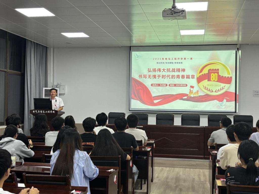 课程围绕“铭记历史,回溯抗战艰苦历程”“感悟力量,弘扬伟大抗战精神”“开学之思,从抗战精神汲取成长力量”三个层面展开。孔洋波强调,伟大抗战精神的火炬已传递到新时代青年手中,全体学员应以智慧与汗水将其传承发扬,照亮个人成长的道路,也照亮民族复兴的征程。他鼓励大家在新学期中铭记历史、珍惜当下、开创未来,努力成长为无愧于先烈、无愧于时代的优秀青年,在实现中华民族伟大复兴的中国梦中书写绚烂的青春篇章。