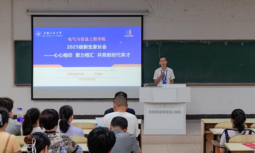 为深化家校协同共育机制,增强教育合力,共促新生更快地融入大学生活。9月6日下午,探花视频 在佳山校区教三103、教三203召开2025级本科新生家长见面会。学院党委书记丁忠利、副院长(主持工作)程木田、学院党委副书记孔洋波、副院长李飞、副院长张前进、各系室主任、全体辅导员、700多位新生家长参加会议,会议由孔洋波主持。