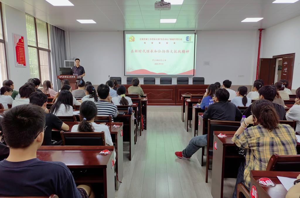学生测控党支部在电气楼113组织开展了“在新时代继承和弘扬伟大抗战精神”专题党课。党课由学生测控党支部书记杨恒基主讲,支部全体党员、入党积极分子参加,共同感悟精神伟力、凝聚奋进力量。